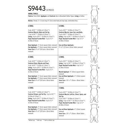 Simplicity Animal Towels S9443 - Paper Pattern, Size One size