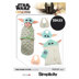 Gifts for your precious cargo - knit hat in 18", 19" and 20" hat sizes has 3D ears and Grogu character face. Lined swaddle sack has hook and loop closed flaps and bias-bound edges. Hooded baby towel is sewn from two absorbent layers of terry cloth and features Grogu face and ears. Self-lined bath mitt is sized for adult hands and has sphere applique, Grogu's favorite toy! Generously-sized bibs have absorbent terry cloth lining, hook and loop closure at neck and Grogu face and ears or hand-painted meme sayings.