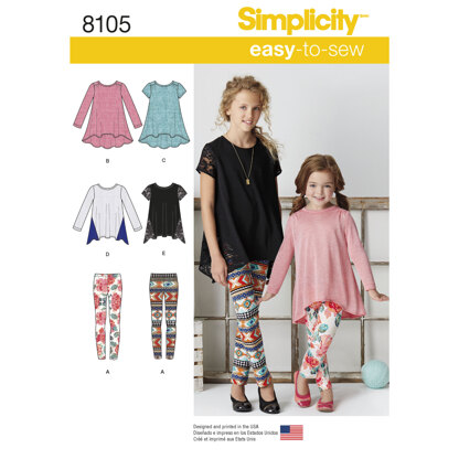 Simplicity Child's and Girls' Knit Tunics and Leggings 8105 - Sewing Pattern is a Sewing pattern by Simplicity, available as a Paper Pattern and includes instructions in English, Spanish. Super fun to make, this pattern could be your next masterpiece!