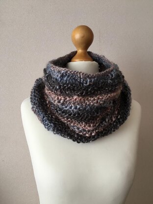 Knitted with a variegated yarn that also varies in thickness, which makes for a very unique design.