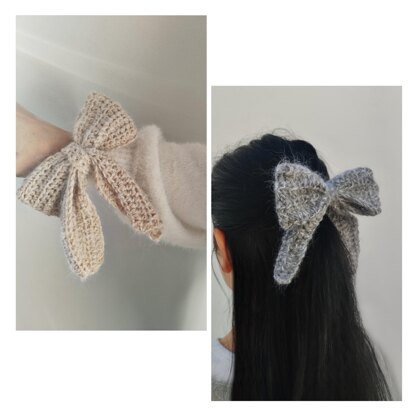 The bow in the photographs is used as a hair tie, but you can use it as you want by adding a barrette, a safety pin, or any accessory.