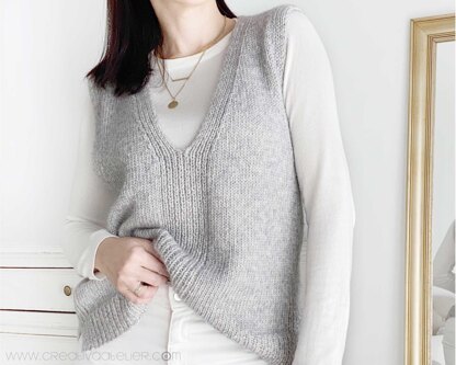 In your pattern, you will find a list of stitches and techniques used, measurements, materials, abbreviations, and row by row detailed instructions. You will get a perfect knitted vest, which you can use indistinctly on one side or the other.