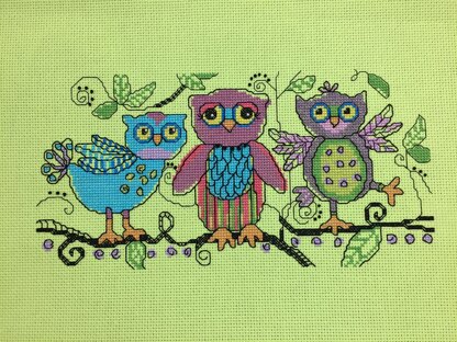 Designed by: Kooler Design Studio\nAdd a sweet touch of woodland whimsy to your dГ©cor. The loose and 'sketchy' style makes this one unique. This oh-so-cute, colorful and playful trio of owls will delight any bedroom, playroom or nursery.\n
