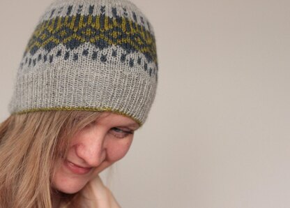 Using 3 colors of a light DK weight yarn (the sample used Triskelion Scylfing DK), this hat is a little bit of colorful luxury for your head. The simple colorwork pattern makes it a fun little knit. Use up any yarn scraps you have, and enjoy!