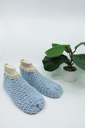 SAJATA-E FOR D2BD Sky Blue Crochet Slippers. This pattern is an intermediate beginner project for adults who want to learn how to crochet slippers. Easy-to-read, fun, and colorful crochet pattern can be accomplished within 2 hours. Great design for a weekend project at home with the family or alone, relaxing with a hot cup of cocoa. If you have any questions regarding this pattern, you can contact me, and someone will help you within 24 hours.