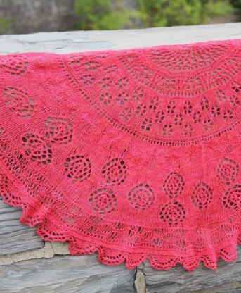 A variety of lace patterns are placed in between these increase rows.