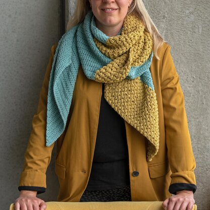 The Slanted Scarf is made with Yarn and Colors Baby Fabulous. This scarf with angled tips has two colors and one of the two colors gives a beautiful texture to this scarf through the stitch. Choose ton-sur-ton colors for a soft effect or go for two contrasting colors and give your autumn outfit some extra spice!