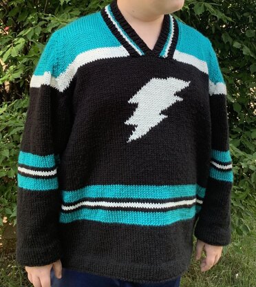 When I saw LionBrand’s DIY Glow – I was in love! I knew I needed to use this yarn! Then my son saw it and thought it was cool. I have found my muse! Glow in the dark yarn + a 10 year old boy = match made in heaven! Throw in a splash of hockey and Slapshot was born! This is a sweater he will actually wear! This sweater uses chart and color work and is great for learning new techniques.
