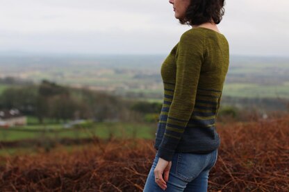 The special details on this cardigan transform it into a unique garment. Knit from the top down with raglan shoulder shaping, the top of the shoulder has garter triangles and the body and sleeves gently transition with stripes to a second colour.