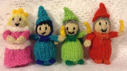 These beautiful knitted tree decorations are in the style of Sleeping Beauty and her three fairy friends - Flora, Fauna and Merryweather.
