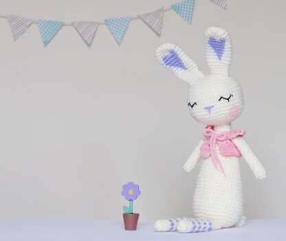 This cute sleepy bunny pattern is my own design, when finished he measure's approx 17" tall ( when using recommended yarn and hook ) The pattern includes instructions for the little cardigan too! She has little love hearts crocheted into her ears using the tapestry crochet method which I explain how to do in the pattern.