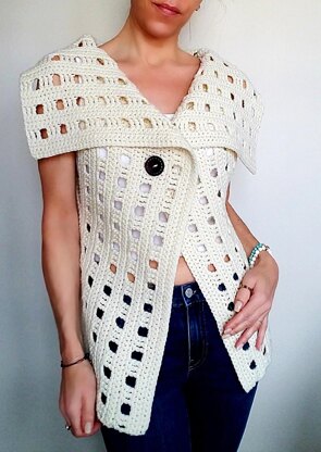 This is an easy pattern for a sleeveless cardigan with a fold over collar. The cardigan is worked sideways in one long piece and there is nothing to sew!! There are 4 different lengths to choose from: 22", 23", 24.5" & 26" & the width is up to you. I show suggestions for 4 different sizes but again it can be made for any size! I think the cardigan looks and fits best with either a button or a belt but it can be worn opened too. Any medium weight (4) yarn would be perfect just make sure you achieve the correct gauge. The pattern uses basic American crochet terminology and if you have experience with reading a written pattern this is perfect for an advanced beginner.