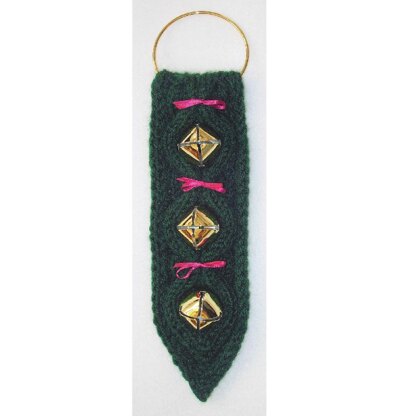 Holiday sleigh bells dress up your front door! A quick-to-knit project for your home, or for a gift. Hang it on your doorknob to greet visitors with a jingle. Share the holiday spirit!