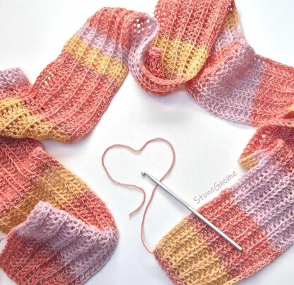 This Tunisian crochet scarf is truly a breeze to make and wear — light, airy, curl-free, and reversible.