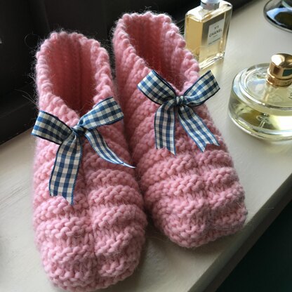 These slippers are super quick & easy to make and mega comfortable to wear! Designed for beginner knitters (or experienced knitters in relaxed mode), the slippers are knitted flat and then seamed across the heel, toe, and top of the foot. More experienced knitters could easily adapt the instructions by working a provisional cast-on followed by a 3 needle bind-off or Judy’s magic cast-on to minimise back seam bulk.The pattern is offered in six sizes as indicated, ranging from 16cm to 30cm foot (US child size 9 to adult size 12)(UK child size 8 to adult size 11). The stitch pattern lends itself to an extremely elastic fabric, so it is important to measure carefully and not over-knit the length, or they will be just too baggy in wear. Lastly, embellishment can know no bounds! The slippers look fab just plain, but a ribbon or pompoms are fun. Stripes, too, are an option - the options are limitless!