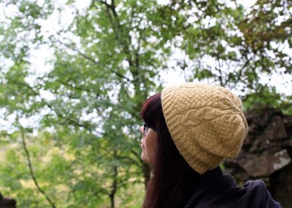 SlipThatch is a brim-up hat, knitted in the round. Cast on for the brim with smaller needles & knit twisted rib for the first inch or two. The needles are then changed to the larger size and the charted/written pattern is commenced. Decreases begin before the crown, remaining in pattern.