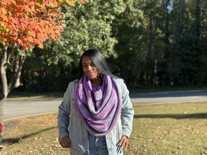 This fun piece can be worn as a cowl, huntress-like piece, shawl and snood.