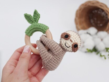 Sloth crochet pattern animal baby rattle teether toy Amigurumi pattern for newborn