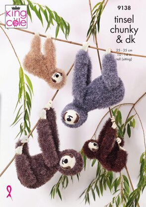 Sloths in King Cole Tinsel Chunky & Big Value Baby DK - 9138 - Downloadable PDF