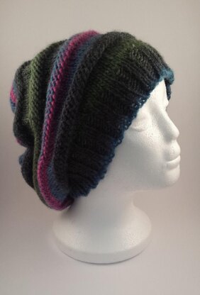 This is a trendy slouchy hat that can be made for either a man or a woman, and the good news is that it is easy to knit. There are no seams if you knit it in the round as per the instructions below. This slouchy hat is perfect for a first circular knitting project.