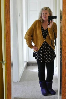 This cardigan drapes like a shawl with sleeves, and fits everyone differently. I have added three sizes, small, medium and large Small UK sizes 8-12, Medium UK sizes 14-18, Large UK sizes 20-22 Machine