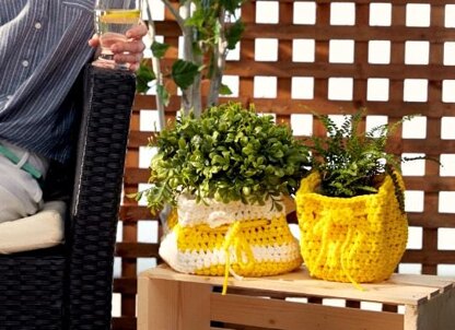 Slouchy Crochet Plant Pot Cozy in Bernat Maker Outdoor & Outdoor Stripes - Downloadable PDF