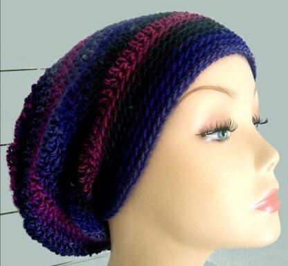 This slouchy style hat can easily be made in one evening; I'm a fairly slow crocheter and I managed to complete it in under two and a half hours. You only need two 2 oz skeins (50 g balls) of medium weight (Worsted/Aran/Afghan) to complete the project.