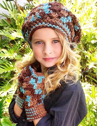 Rowan Slouchy Hat Fingerless Gloves made in the cluster stitch.