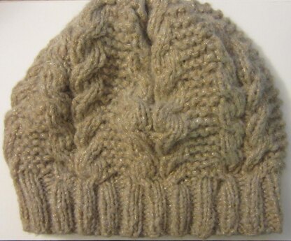 Horseshoe cables combine with garter stitch to create a textured, slouchy hat.