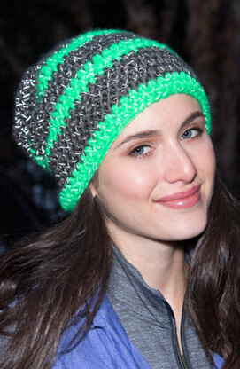 Slouchy Unisex Striped Hat in Red Heart Reflective - LW4736 - Downloadable PDF