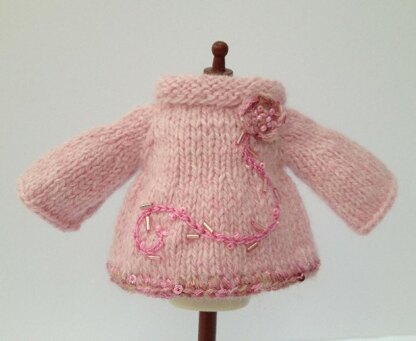 Lovely little sweater and jacket for your Blythe doll. A cozy smock style sweater and a felted jacket. You will need a 4ply or fine DK weight yarn that will felt. It is basically the same pattern with different instructions for making up. You will need a 3mm crochet hook too for going round the edges of the garment and creating button loops. I dip dyed the jacket but it would look great in a stripey yarn too!