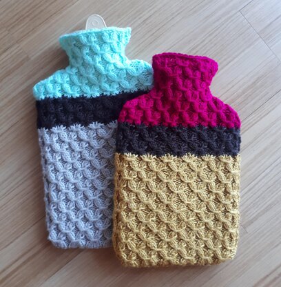 Smocking stitch is used to create this cosy cover. Instructions are included for a 2.5-litre hot water bottle and a 1.75-quart (2-litre) hot water bottle. A side zip can be included to provide easy insertion and removal of the hot water bottle, or alternatively, insert the (rolled-up) hot water bottle through the top opening.