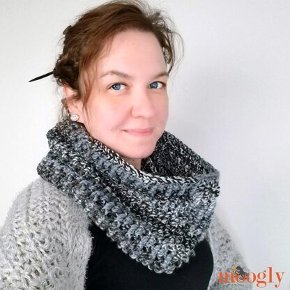 The Smokestack Cowl is bold and tweedy but you can change the look dramatically with the color of Red Heart Gemstone you choose!