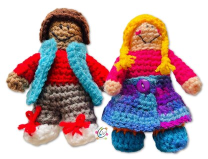 Supplies: Yarn needle for weaving in ends, embroidery needle, black crochet cotton or embroidery floss, scissors, stuffing, ½” button for skirt closure (optional)