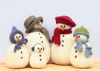 Adorable little snow-people, all playing dress-up for the cold. Five versions to knit in worsted wt singles, heavy worsted, or Aran wt yarns.