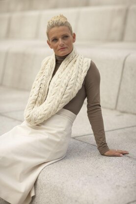 A reversible cable snood, inspired by Laura Biagotti, was my point of origin. I choose the delicious wool and alpaca mixture from Berroco called Ultra Alpaca Fine, and held it double to make the cables pop.
