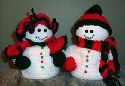 From the website: Snow Couple. Who would guess that they cover a double roll of toilet tissue?? Fairly quick and easy to make.