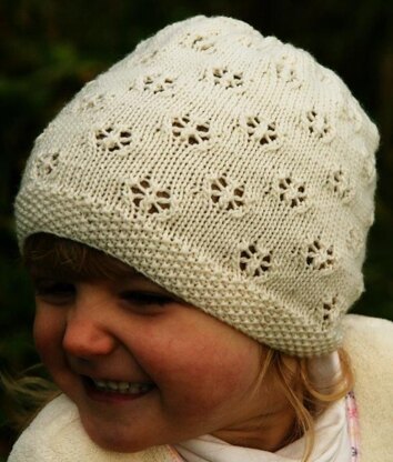 This pattern is for a hat with a snowflake lace pattern. The hat is worked from the bottom up in the round. Charted and written instrucions are provided.
