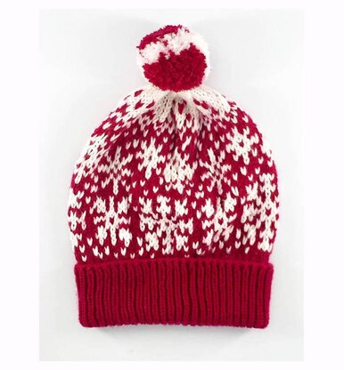 Snow Flurries & Flakes Hat is a mixture of different sized snowflake designs amongst flurries of snow. This is the perfect pattern to try out stranded knitting with 2 colours.