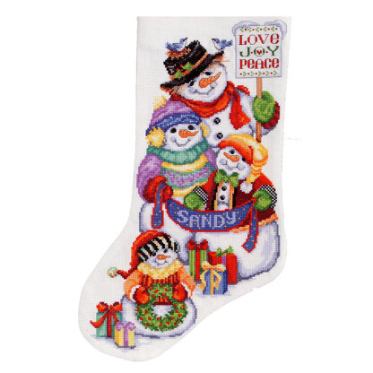 By Basha Kooler. This precious Snow Folk family stocking design will delight anyone who loves to share in the festivities of the season. This bright and cheerful snow family in Counted Cross-Stitch will brighten any snow lover's mantle and Santa is sure to fill this stocking to the brim.\n