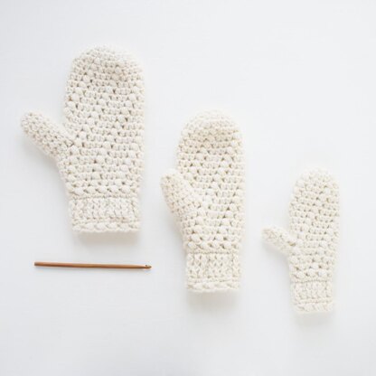 The Snow Spell Mitten pattern includes instructions to create mittens in three sizes: child, teen/adult small, and adult medium/large. This pattern uses worsted weight yarn - Drops Nepal wool/alpaca blend was used for the mittens in these pictures.
