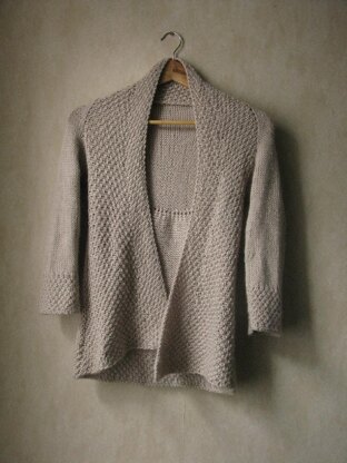 A soft, warm cardigan to keep you toasty when the snow starts falling. Featuring chunky cuffs and wraparound front in double moss stitch for extra cosiness. Seamless construction and aran yarn make this a quick and satisfying knit.