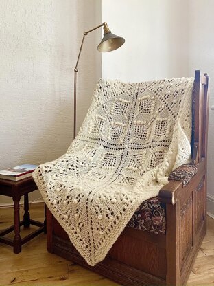 MEASUREMENTS AFTER BLOCKING 126 cm (width) x 126 cm (length) / 49 ½ ‘’ x 49 ½ ‘’. NB Your size depends on your gauge.