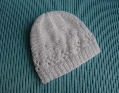 Nothing brings sighs of 'cute' faster than the sight of a newborn babe in a handmade, snow-white hat. The pattern includes five sizes, to fit from newborn to about 3 years old, and the simple design is a good introduction to a lacy pattern. I used an easy care, acrylic yarn, but as long as the tension matches you can use any yarn you like.