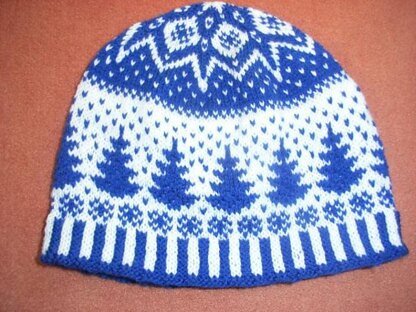Snowfall is a two color winter motive beanie. It has a two color ribbing, a little snow ornament border pattern, followed by big fir trees surrounded by falling snow... The pattern changes color going upwards. Ending in a lovely star like pattern at the top! I think it's the most lovely top I've made so far! And was surprised myself how it turned out.