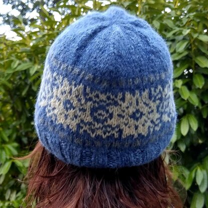 This is a 3-colour stranded hat pattern, knit from the bottom up, in the round. Cast on your sts, follow the chart making increases and decreases as stated. You may add a large pom-pom to the top, once you are finished or leave it as is.