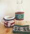 This mug warmer is knit flat with fingering weight yarn from Jamieson’s of Shetland spindrift yarn with 3mm needles. The three colours used are: Eggshell, Dark Navy, and Spruce. However there are endless colour possibilities!