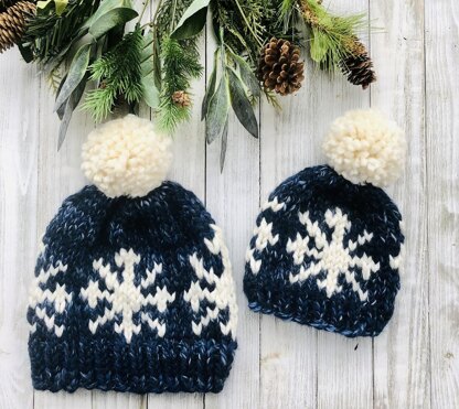 This pattern is the first in a series of three colorwork hats that are perfect for gift knitting. The toddler size takes just around 1 hour to knit, while the adult size can be made in 2-3 hours. The super bulky yarn combined with the added warmth of stranded colorwork creates a very cozy winter Toque!