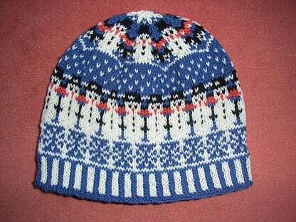 Welcome my 300th design! It's the snowman beanie! It has snowmen and a snowflake peerie pattern all around and seven smaller snowmen at the top. Inbetween are tiny snowflakes... so looks like it is snowing on the snowman... At the crown there is a single snowflake. Make the best out of winter with this funny and beautiful beanie!