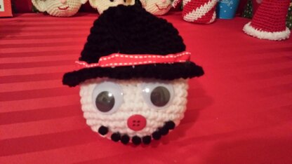 Frosty the Snowman goody bag has a black top hat with a drawstring on top. Fill with your favorite candy for a unique holiday gift.
